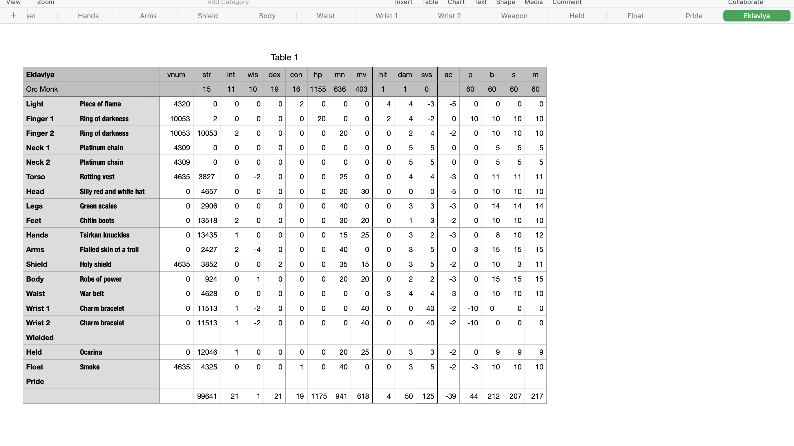 Here is a screenshot of a category sheet: