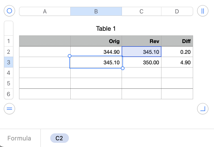To detrmine the difference, the formula would have to subtract the original number contained in its own cell (which no longer exists) from the number placed in the second cell.