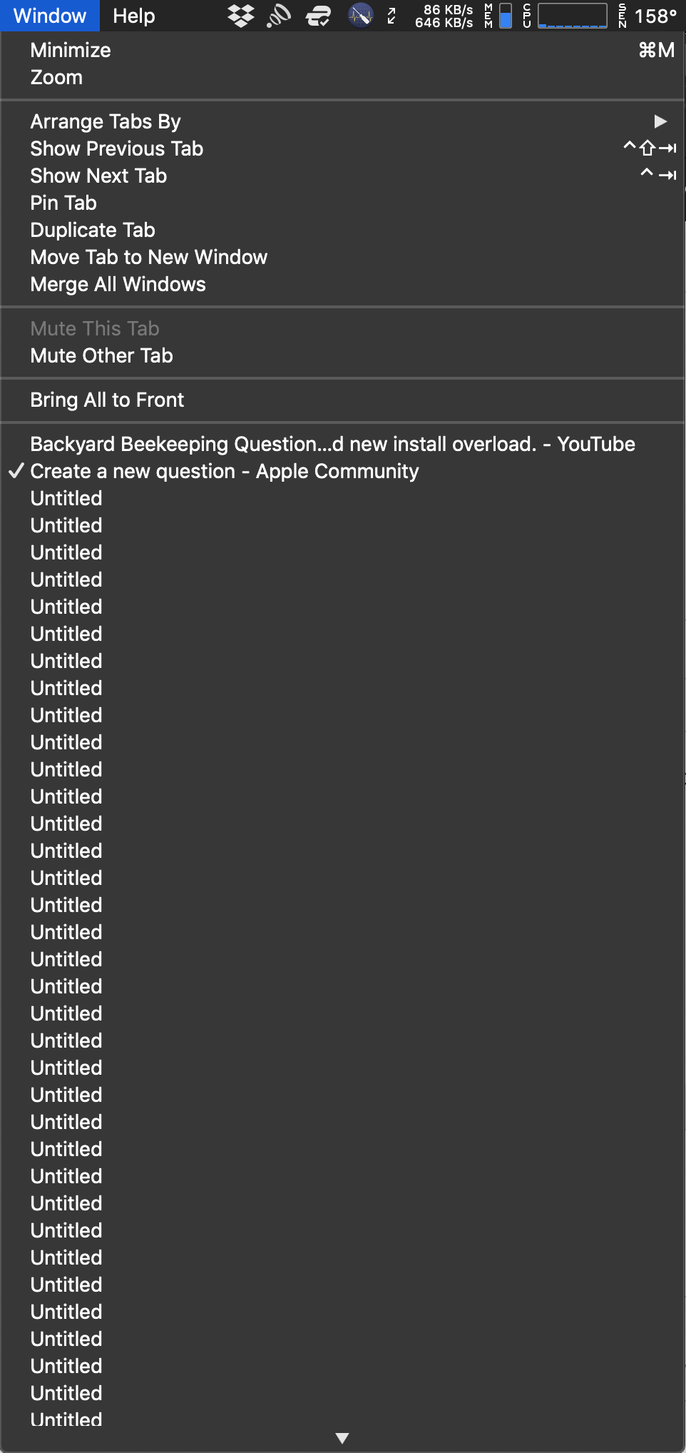 Recently, when I use the dropdown menu for "Window' there is mainly windows titled "untitled". When I go to an untitled window nothing loads.