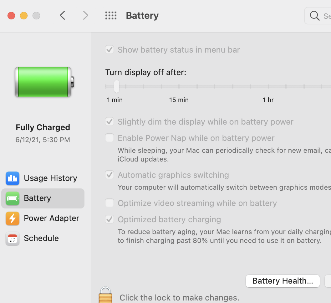 Battery health management is on by default when you buy a new Mac notebook with macOS 10.15.5 or later, or after you upgrade to macOS 10.15.5 or later on a Mac notebook with Thunderbolt 3 ports.