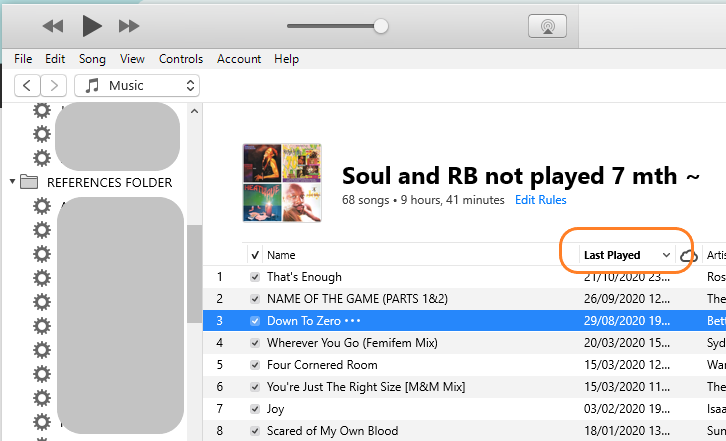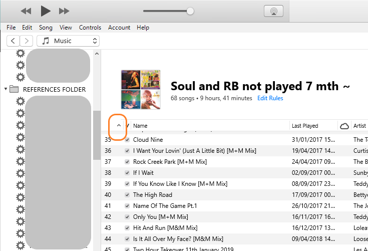 If you look at the first screenshot below, notice that the arrow is in the Last Played header:
