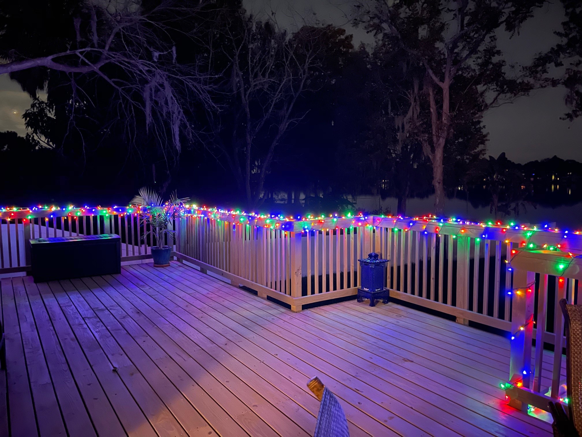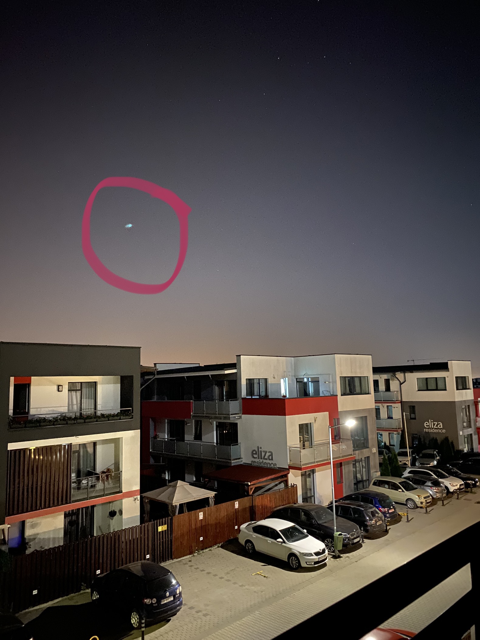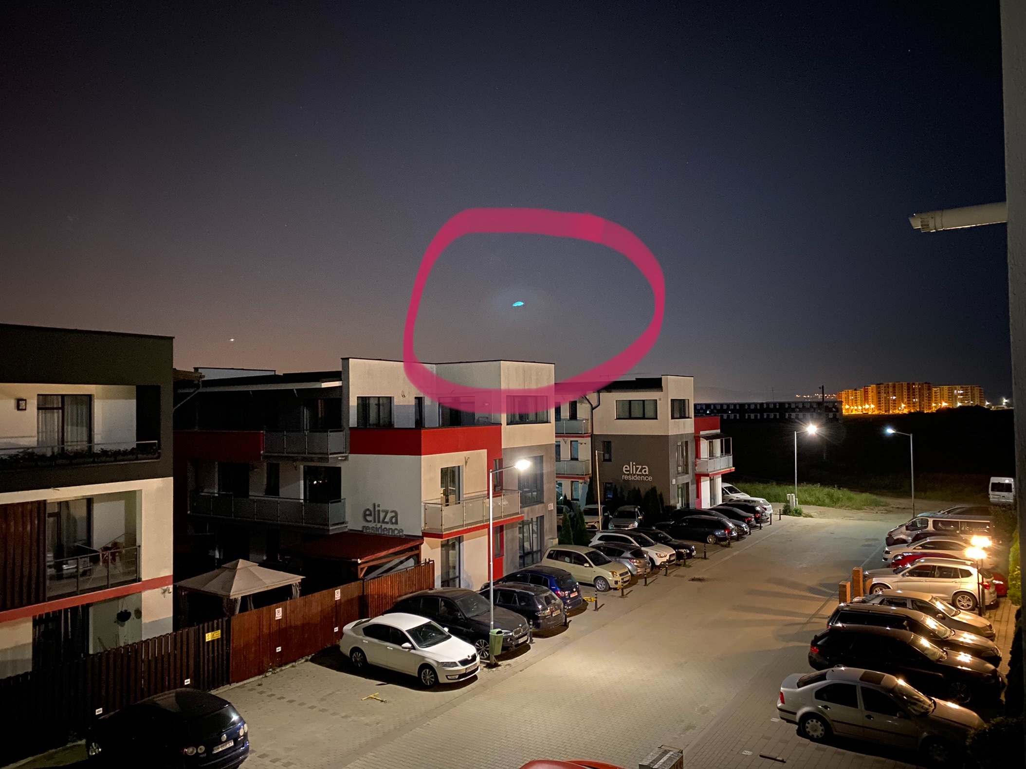 That's lens flare and completely normal. Before you take a picture, you can see the dots (which are reflections of light against the camera sensor) and you can alter the angle of the camera a bit to eliminate the flare. Even $100,000 cameras do this. And it's most noticeable when using night mode photography.