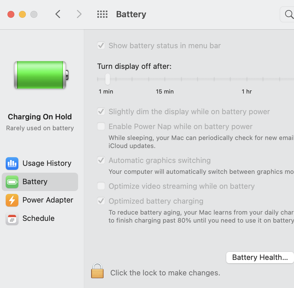 All the battery options are grayed out leaving me no choice is in managing the battery I followed all the basic steps I literally cannot choose any options. Help? I hate when Apple takes away our options and lets the MacBook think it knows best