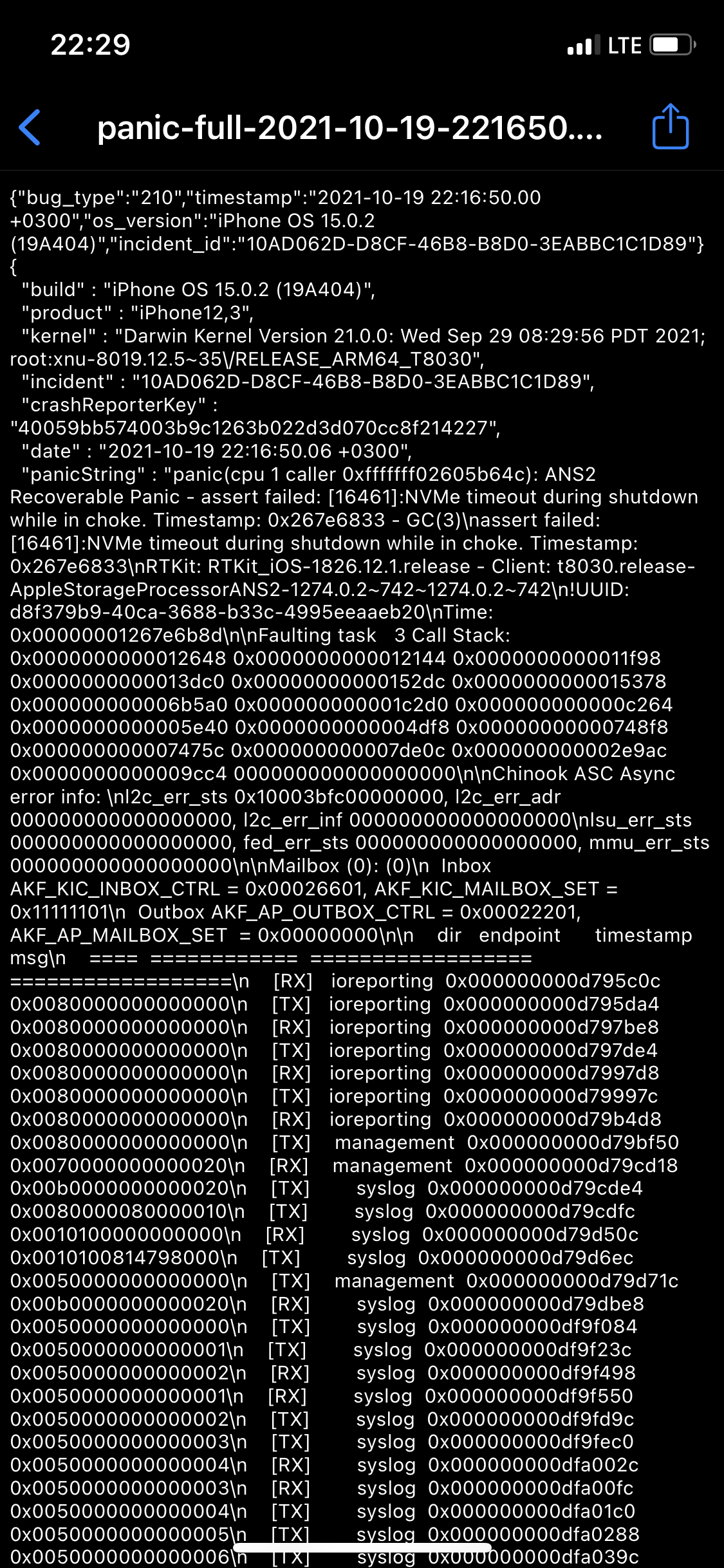If you go to Settings > Privacy > Analytics & Improvements > Analytics Data, do you see any records on the list starting with word 'panic'?