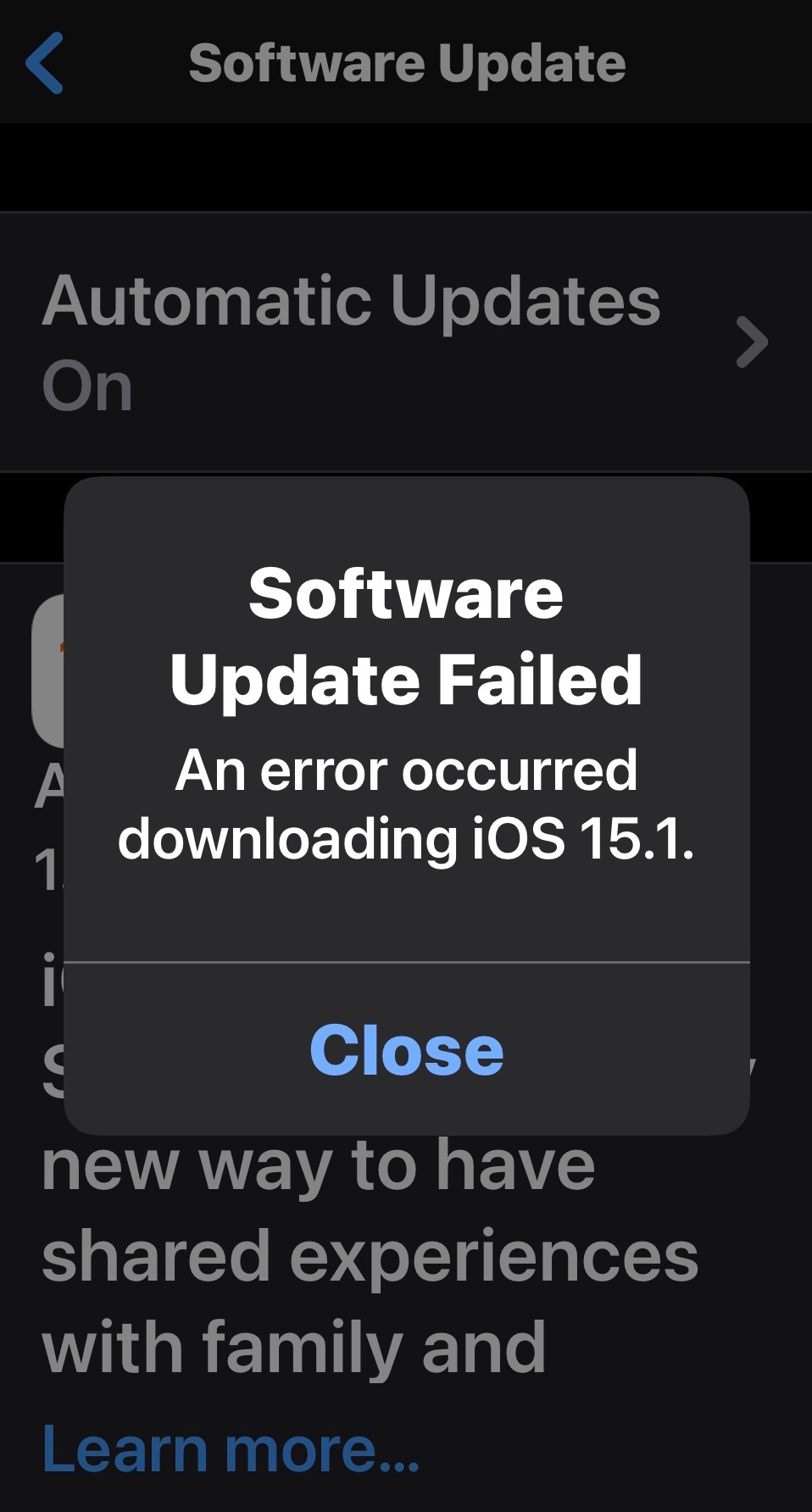 iOS 15.1 download error on iPhone 13 pro
