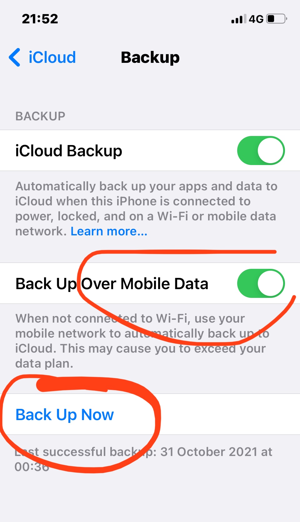 5G capable iphones 12 and 13 on iOS 15 can use mobile data to back up to iCloud, even if it is only 4G