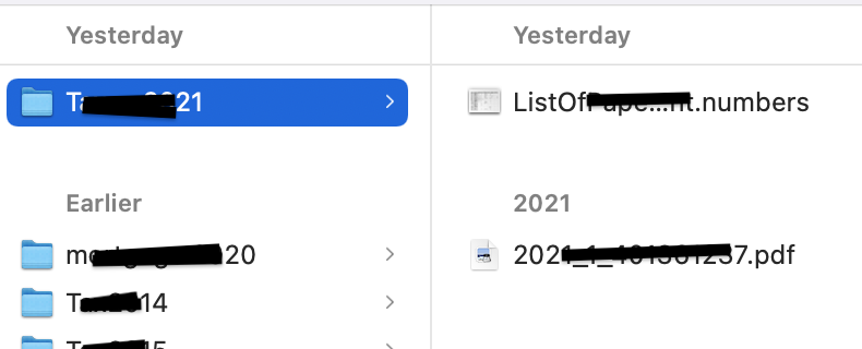 All I did was select the folder ending in 21 - which has three files created yesterday and the numbers file does display but not the other two files