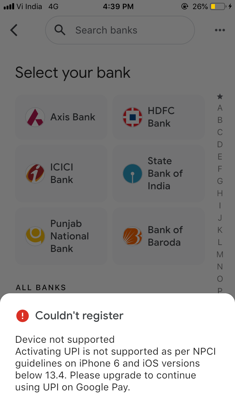 Banking apps not supported it asks 13.5 version and recently my net banking also not working
