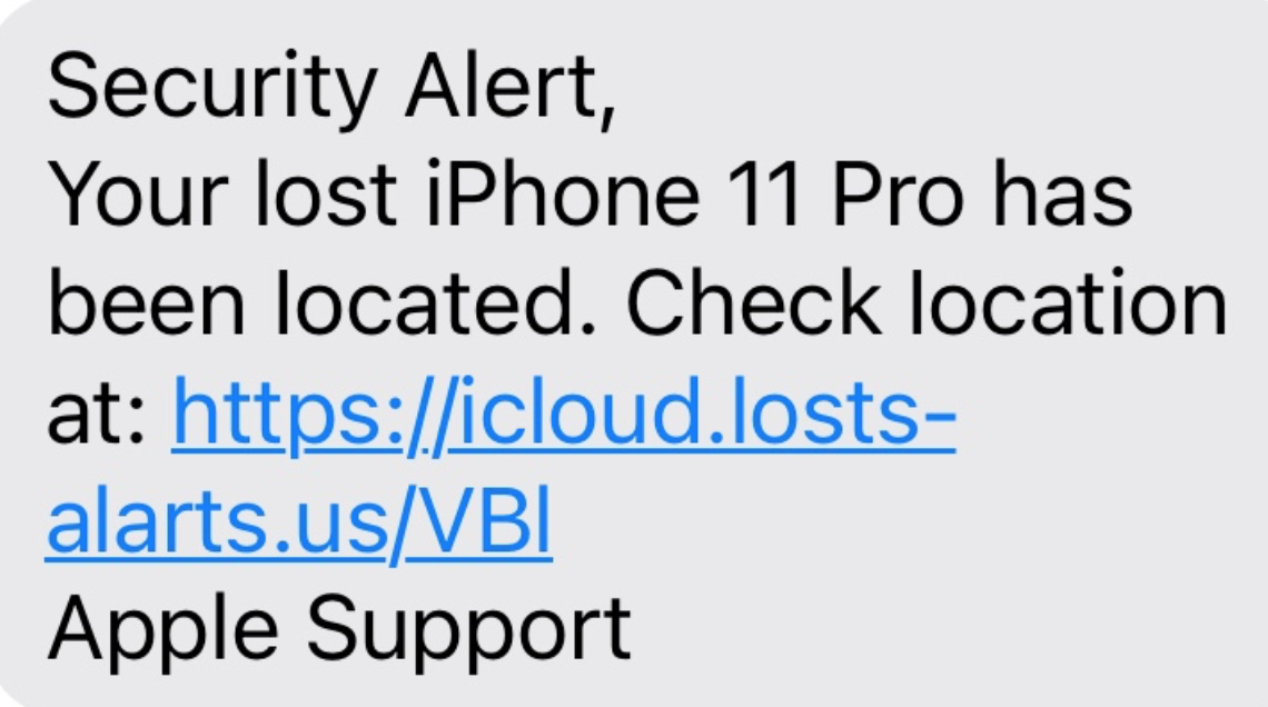 Your lost iPhone 11 Pro has been Iocated. Check Iocation at: icloud.losts-alarts.us/VBl