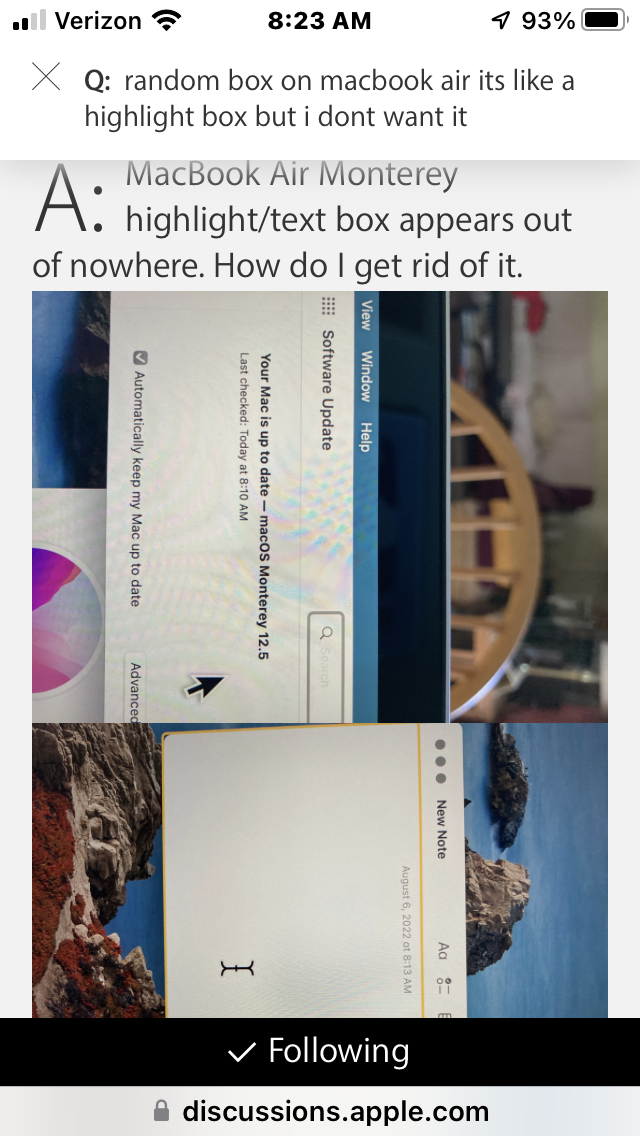 MacBook Air Monterey highlight/text box appears out of nowhere. How do I get rid of it.