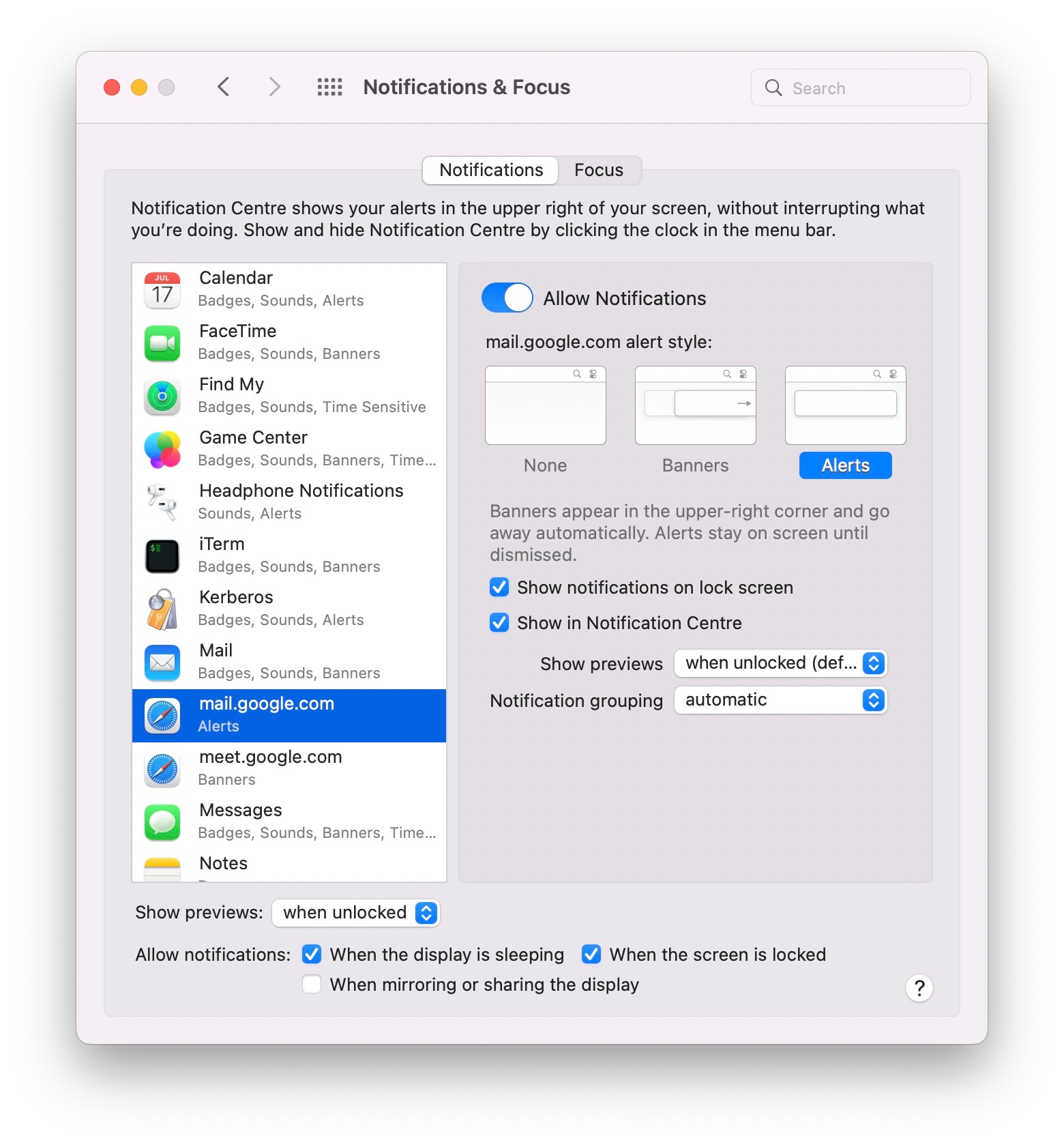 Setting to enable sound for notification for mail.google.com safari is not displayed. I can see the option for other apple application. How to enable sound for notifications from Safari mail.google.com?