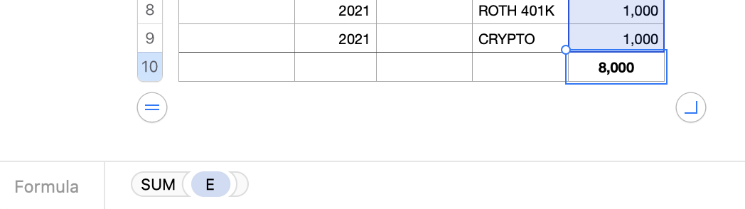 =SUM(E)