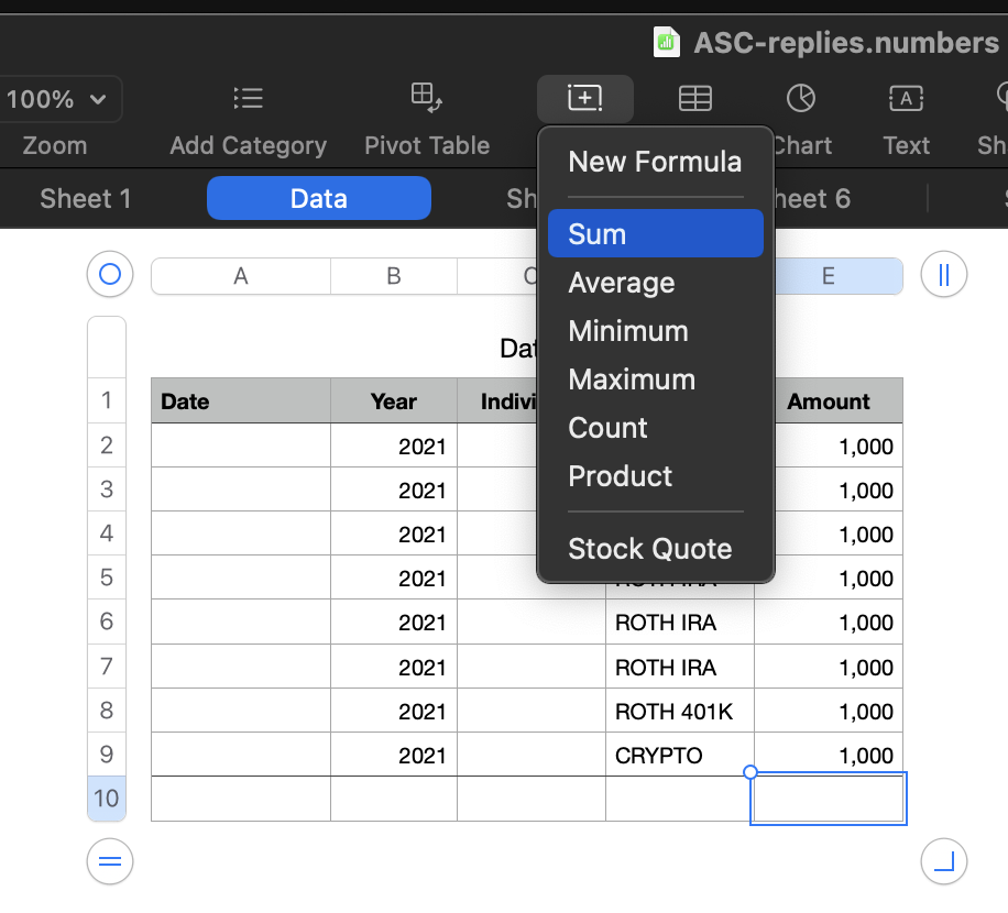 How do i add a row of total in Numbers?