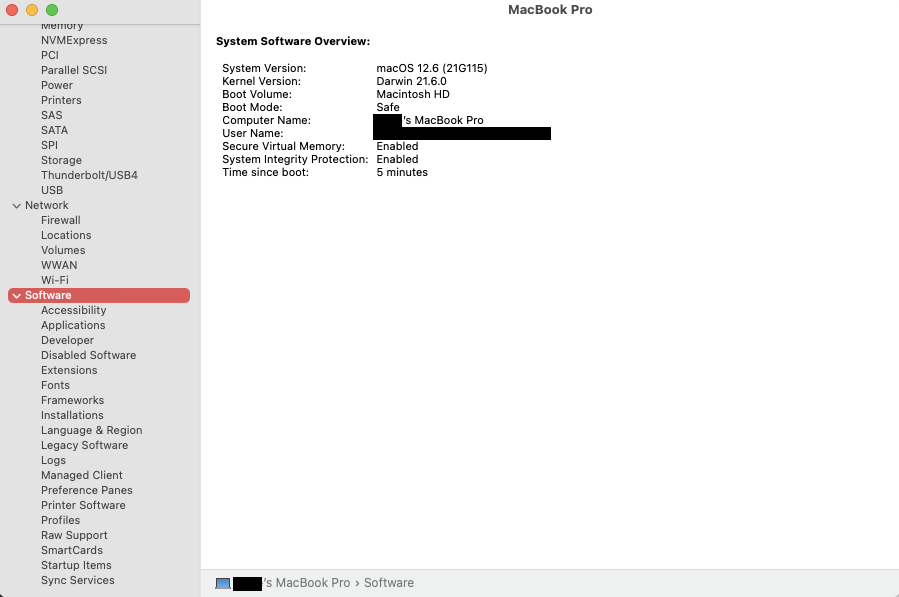 MacBook Pro 13″, macOS 12.4