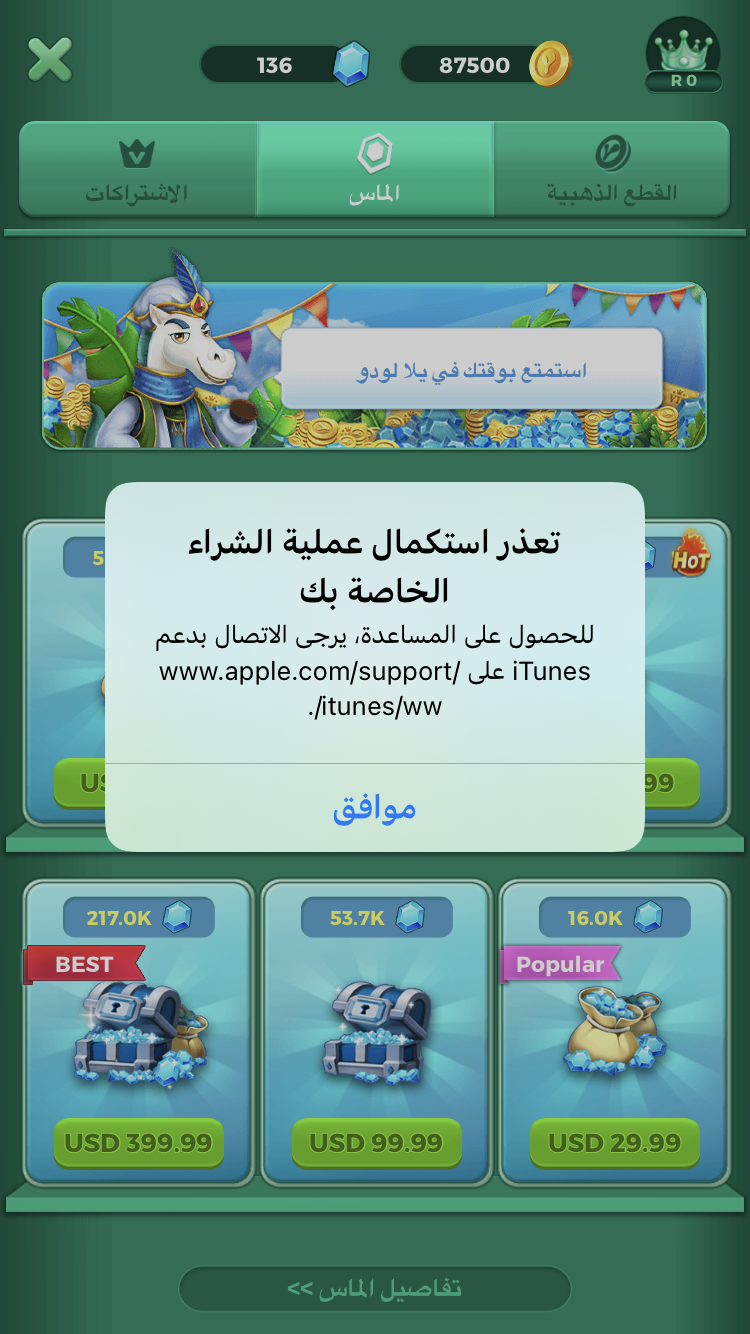 I have a problem with buying from iTunes and from other programs, for example, in the Ludo game, I can't buy