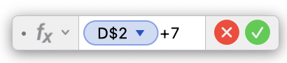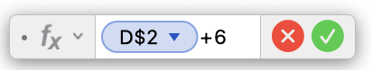 The Date, December 2 was entered in cell D2. Numbers set the year value to the current year, 2022, and added the Time part, setting it to 00:00:00 (as noted above)