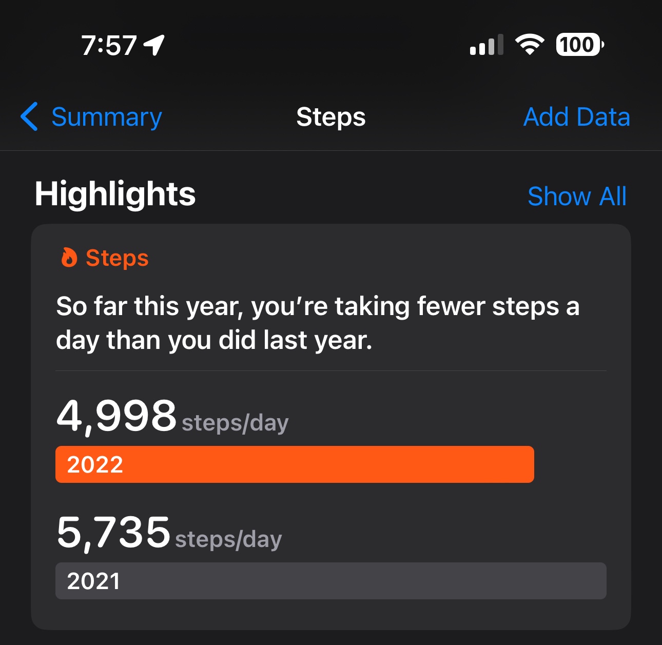 When I go into "Steps" in the Health App on the iphone...I can click on "Y" to see the average steps per day for this year (i.e., 2022)...but don't see a way to look at 2021.