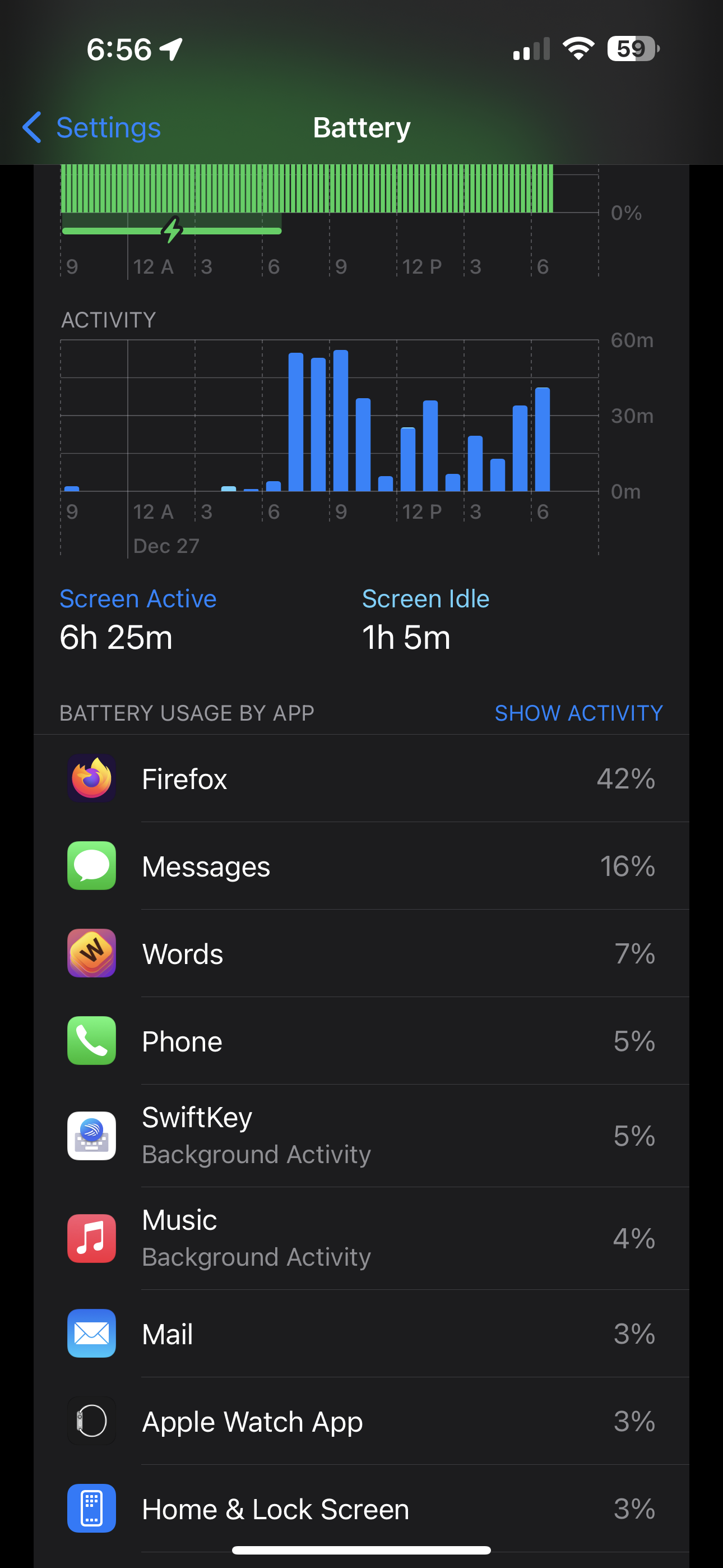 Settings, >Battery, "Battery Usage By App"