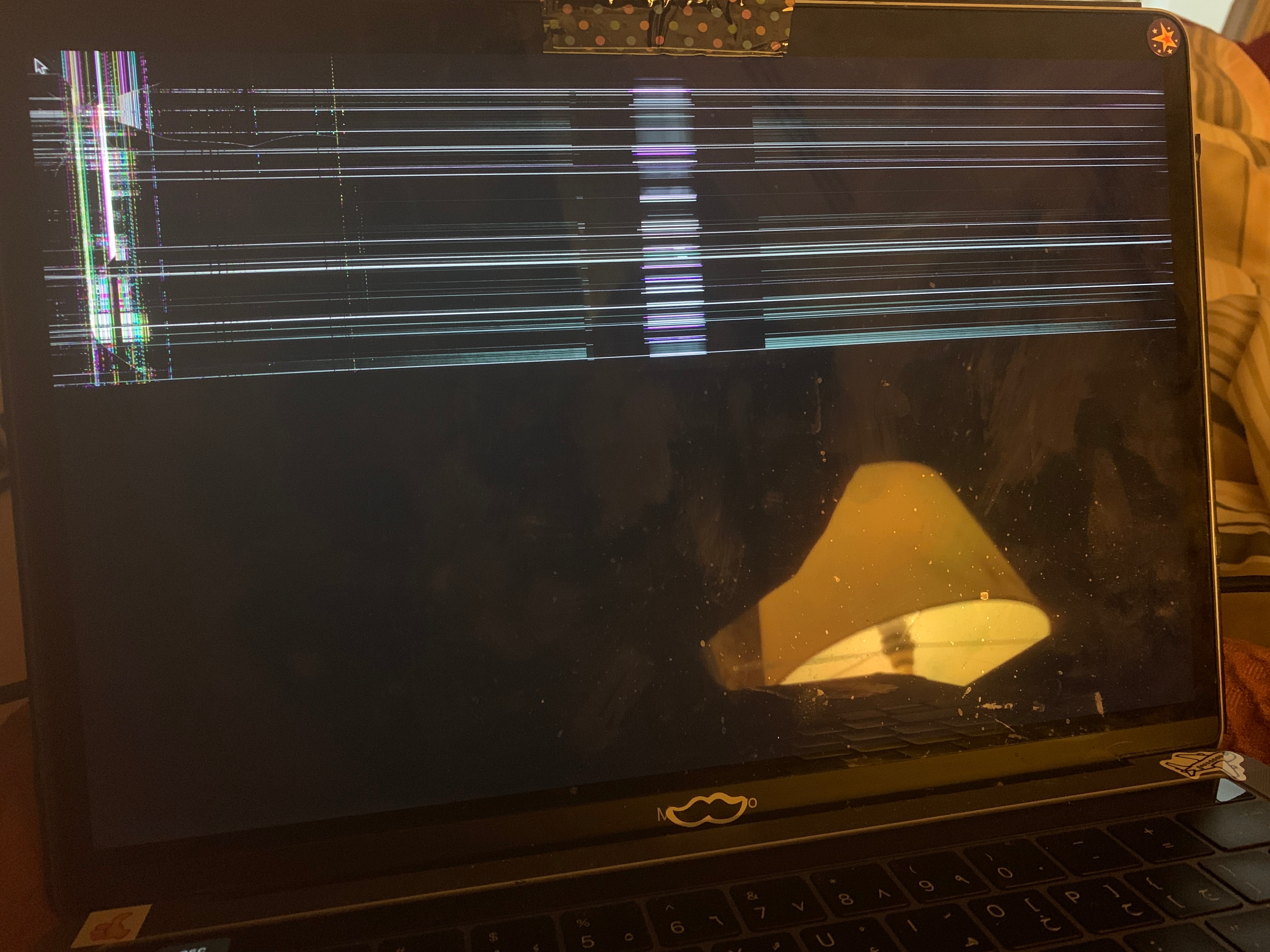 5: A huge piece of what appears to be colored tape covering the webcam at the top-center of the screen