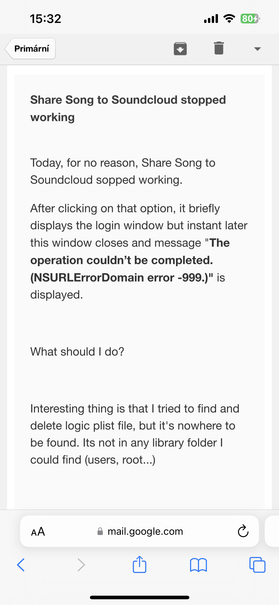 Today, for no reason, Share Song to Soundcloud sopped working.