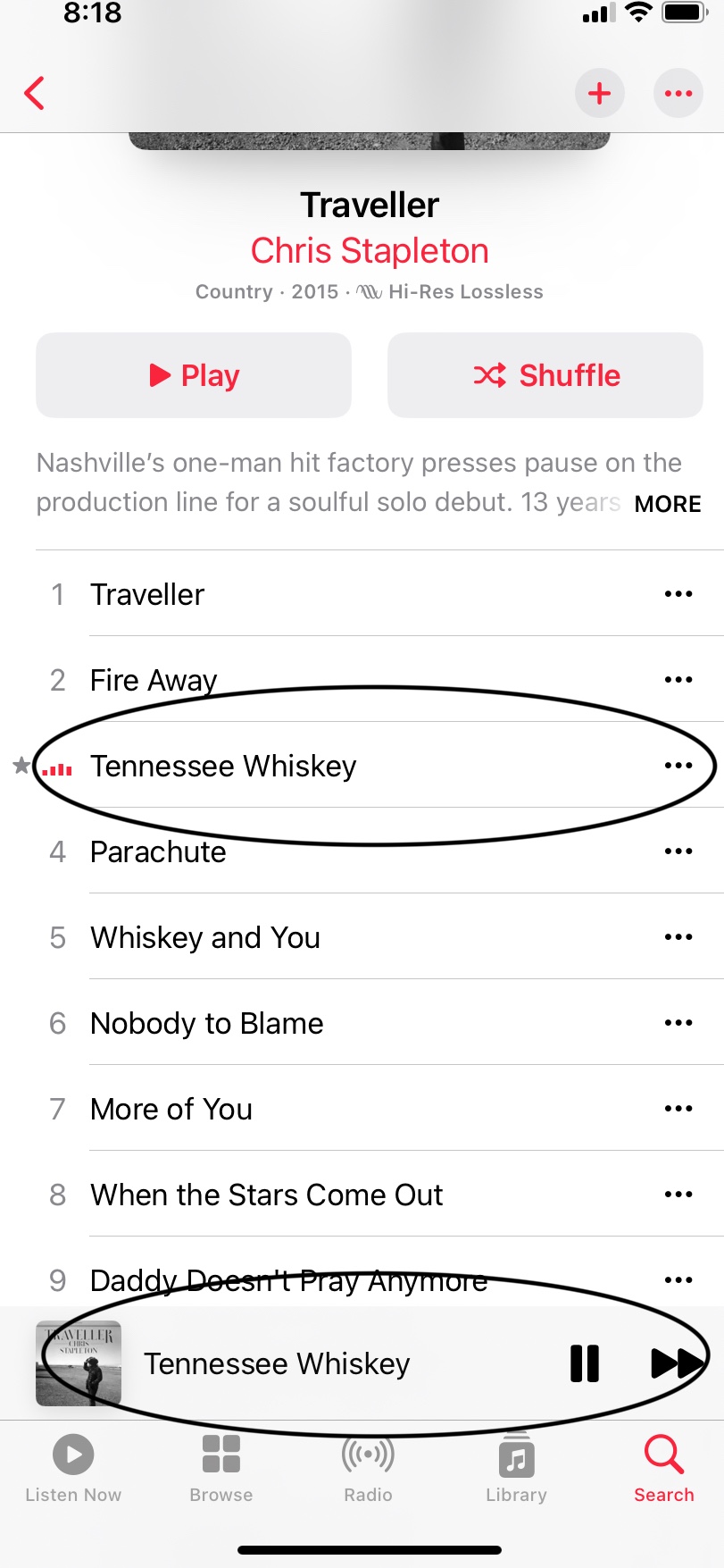 However, if I navigate to the album, “Traveller”, and select “Tennessee Whiskey” from there, the song plays fine.