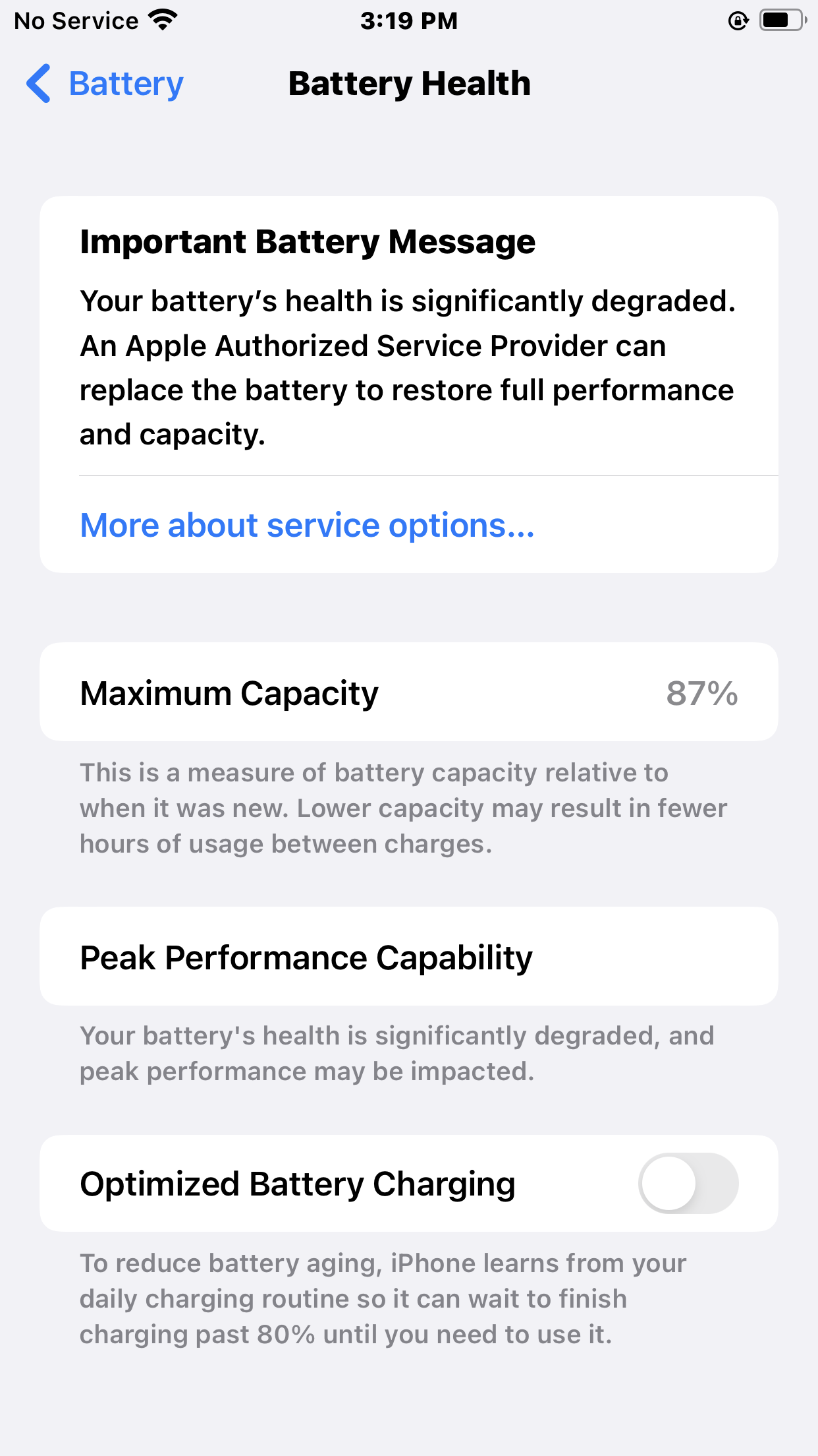 The appearance of this message after an update, knowing that the battery is very excellent