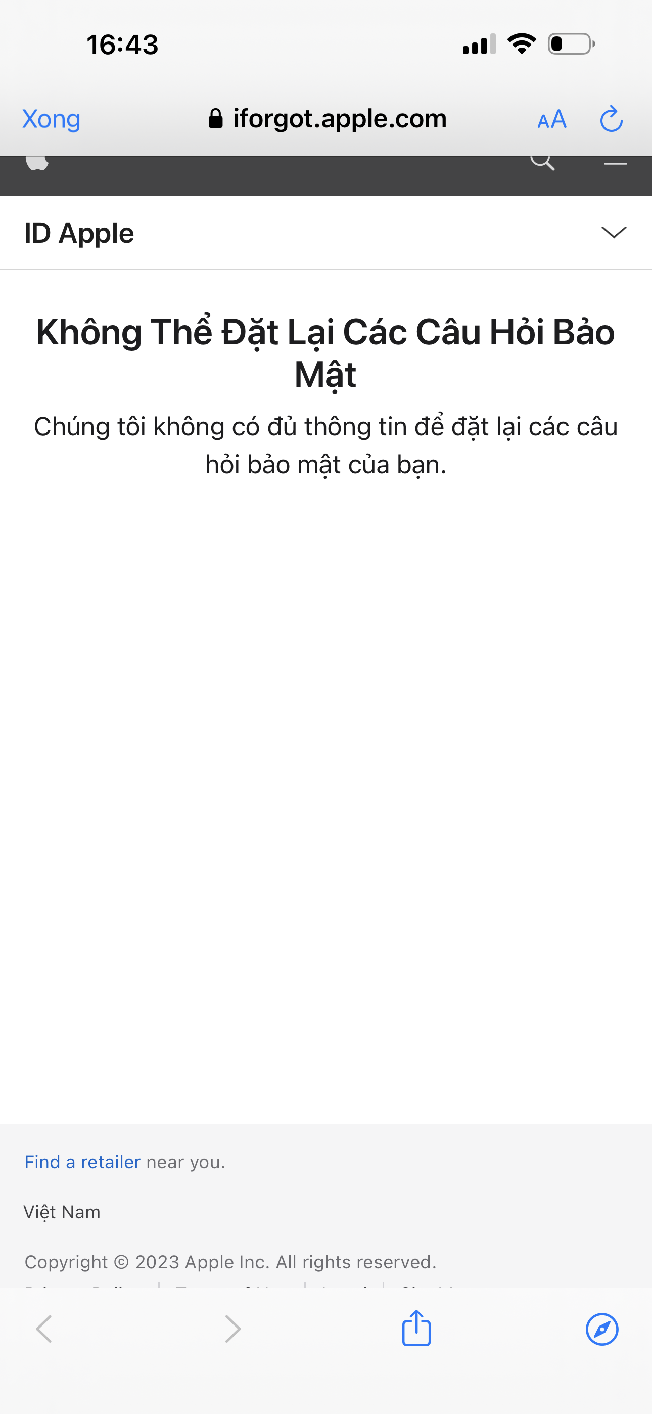Tôi đã đã làm theo hướng dẫn nhưng đến phần trả lời câu hỏi tôi không nhớ câu trả lời đó nên không thể đăng nhập tiếp để thay đổi câu hỏi, APPLE giúp tôi bằng cách xác nhận bởi email sẽ dễ dàng hơn cho tôi thay vì trả lời câu hỏi. Cám ơn