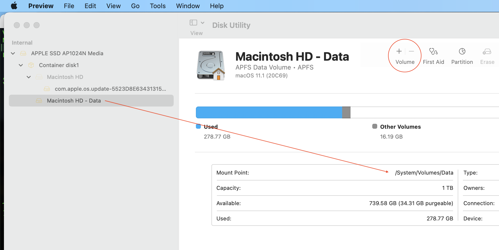 1: APFS Volume Macintosh HD - Data 512.8 GB disk2s1