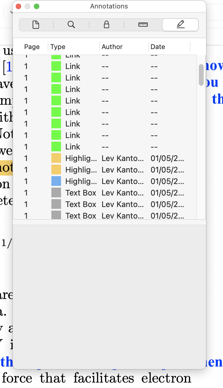 PDF files: Preview seems to be loosing most of the annotations, and shows after saving just a subset of them. I started investigating. First of all, , I can see them all in the Inspector, below is just a preview of what is there: