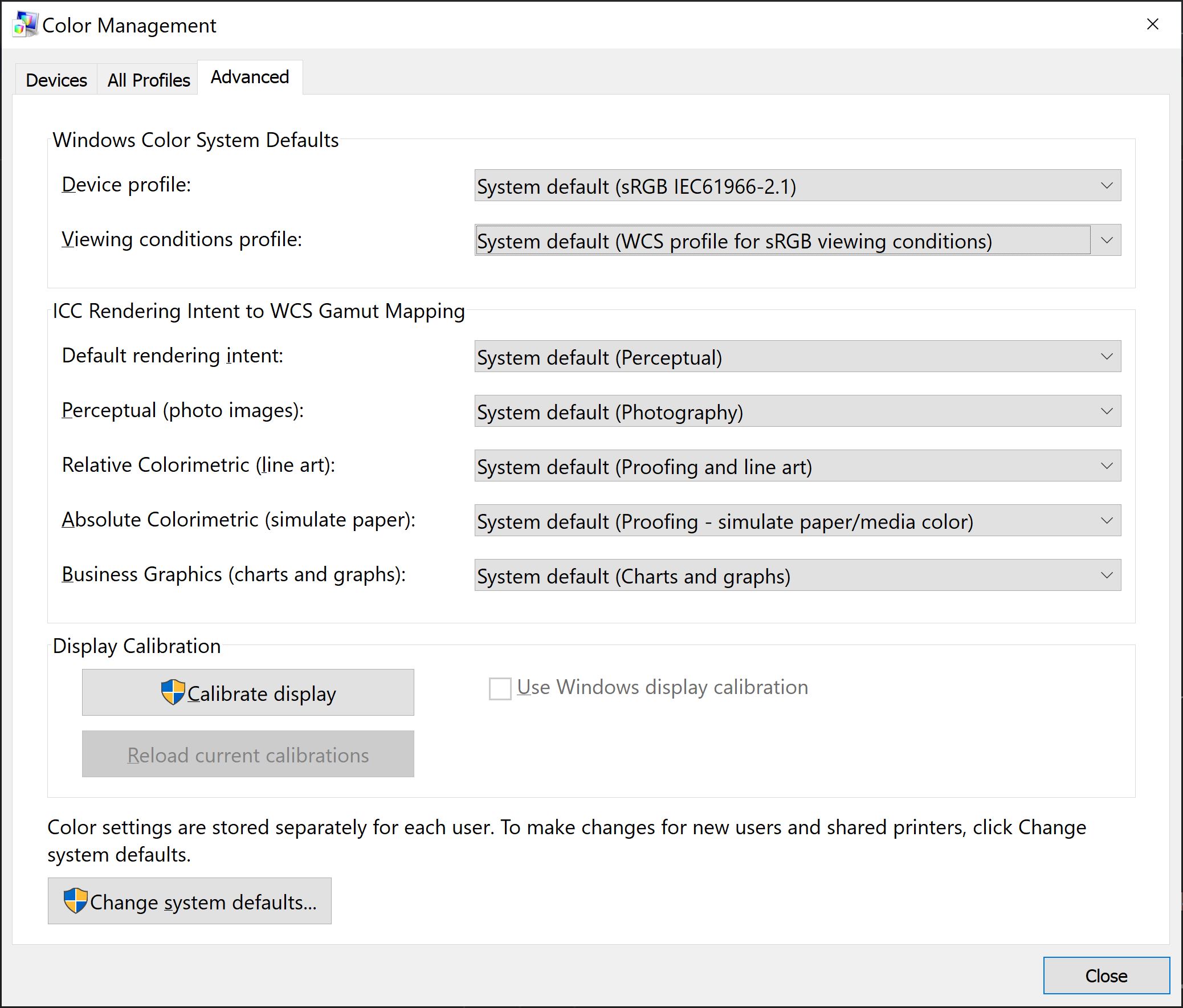 The last tab is Color Management. There is an advanced option that opens a rather large menu window with sRGB profiles, but I don't think that has anything to do with refresh rate