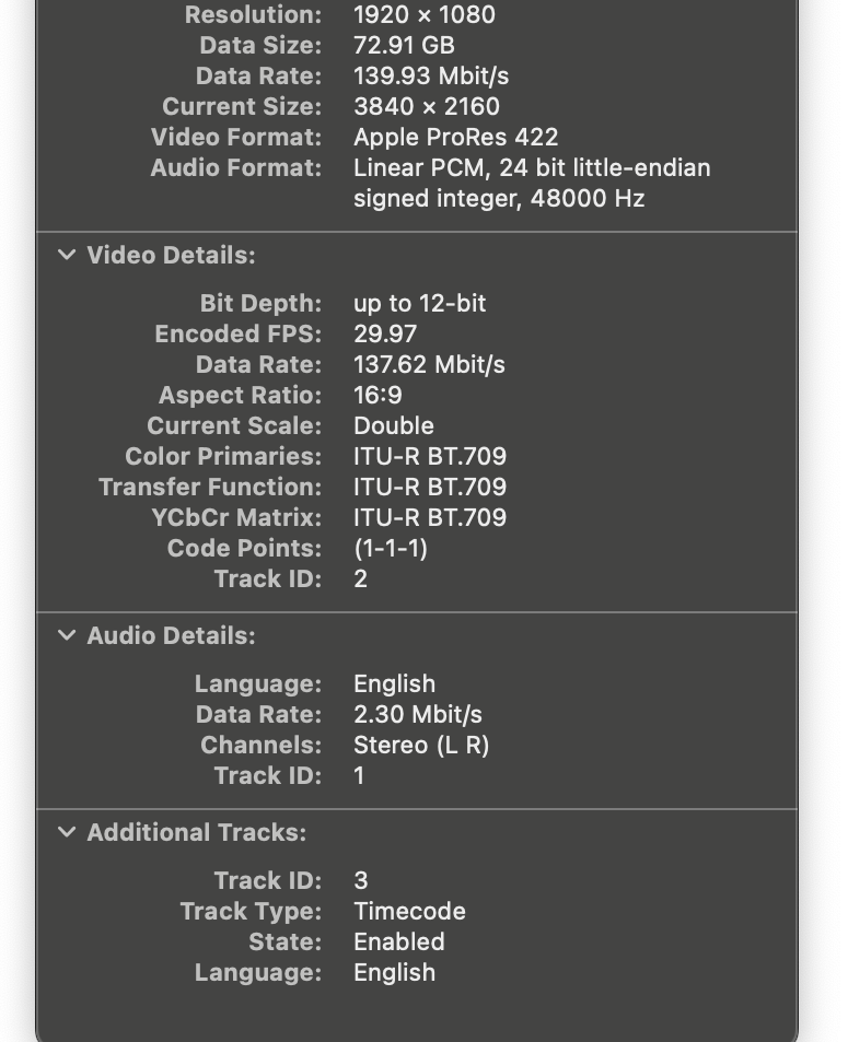 Sorry, I should have provided more information. I'm converting ProRes files created on a Atomos Ninja V via HDMI from a Sony NX5U. This is what the original file looks like: