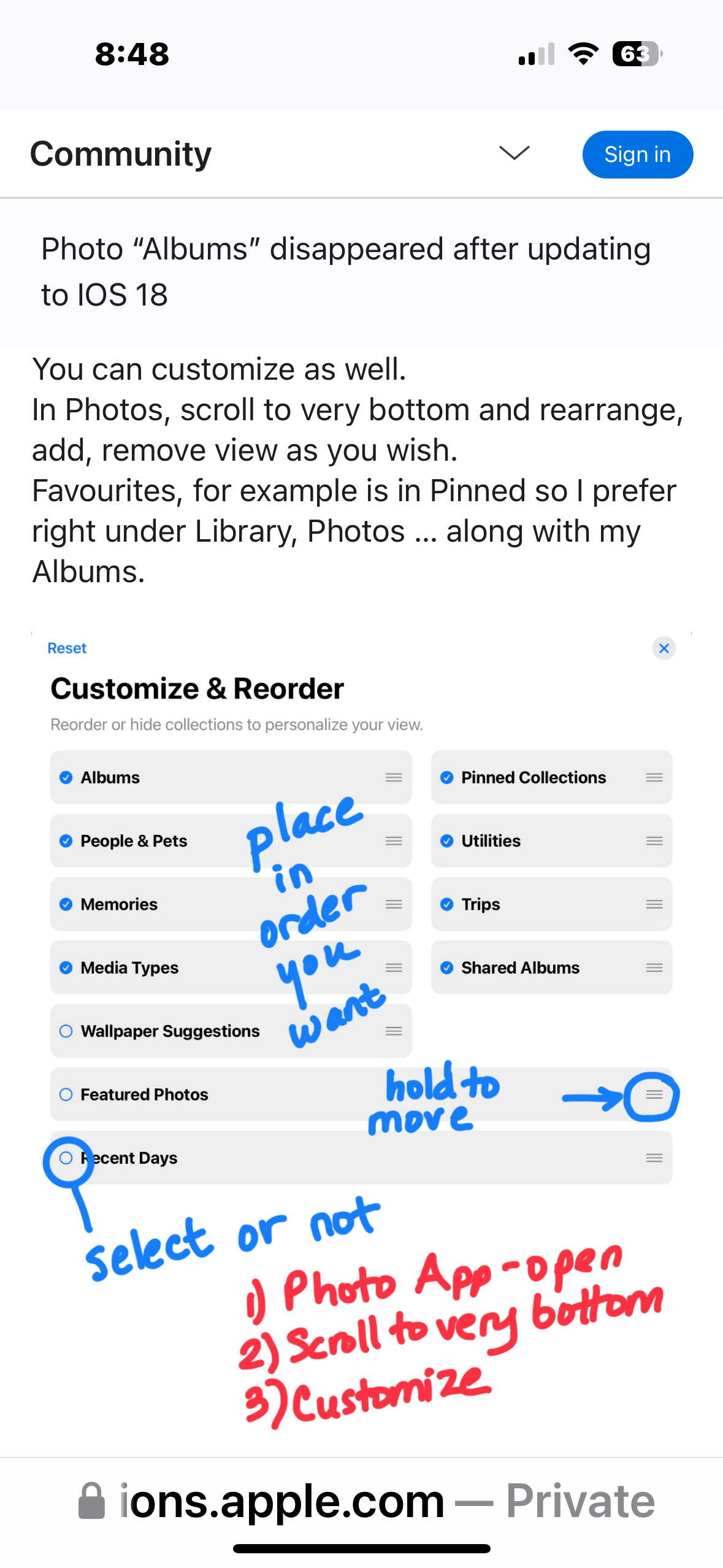 Photo “Albums” disappeared after updating to IOS 18