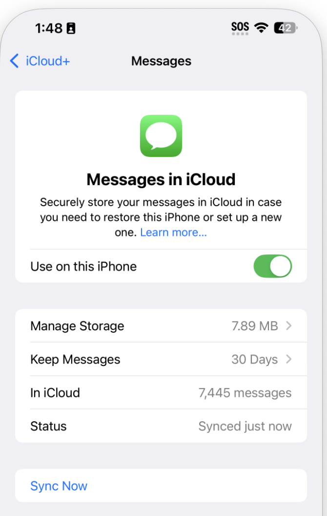 - "Manage Storage" - Any conversations over 99 and that is as a whole, so if you have 5 convos selected 25 messages each, even though you delete them, they will retain in "In iCloud" and will not really be deleted.