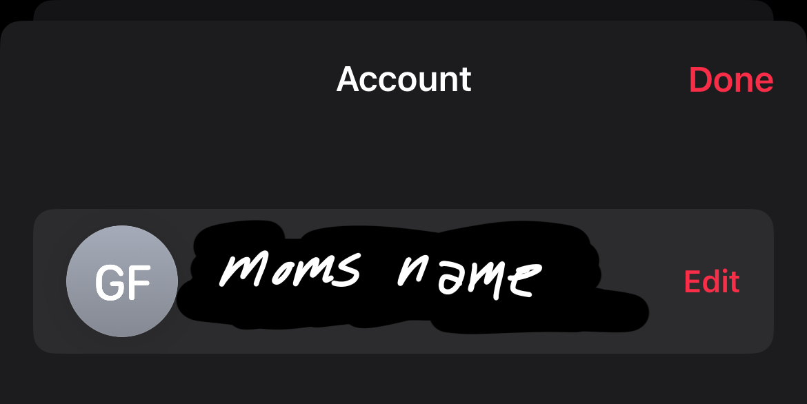 I recently bought an apple music subscription. But, when I bought it, it changed my profile (profile picture and name) automatically to my moms name and profile on apple music. But, When I check which account is signed in it still shows that my apple id is signed in. Im just confused if this means my mom can see what songs I am listening to or not. (ill add pictures since my explanation is probably confusing)