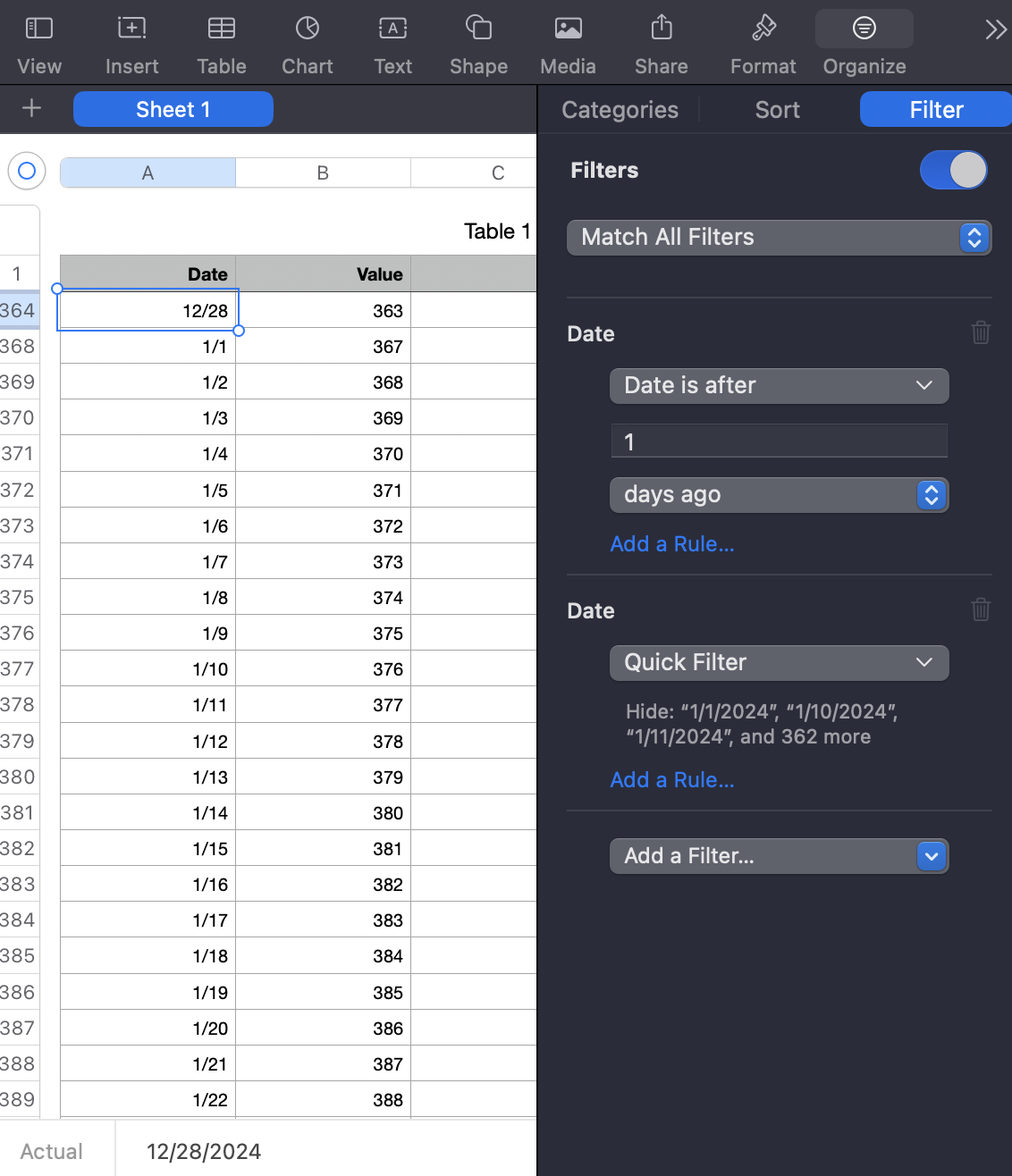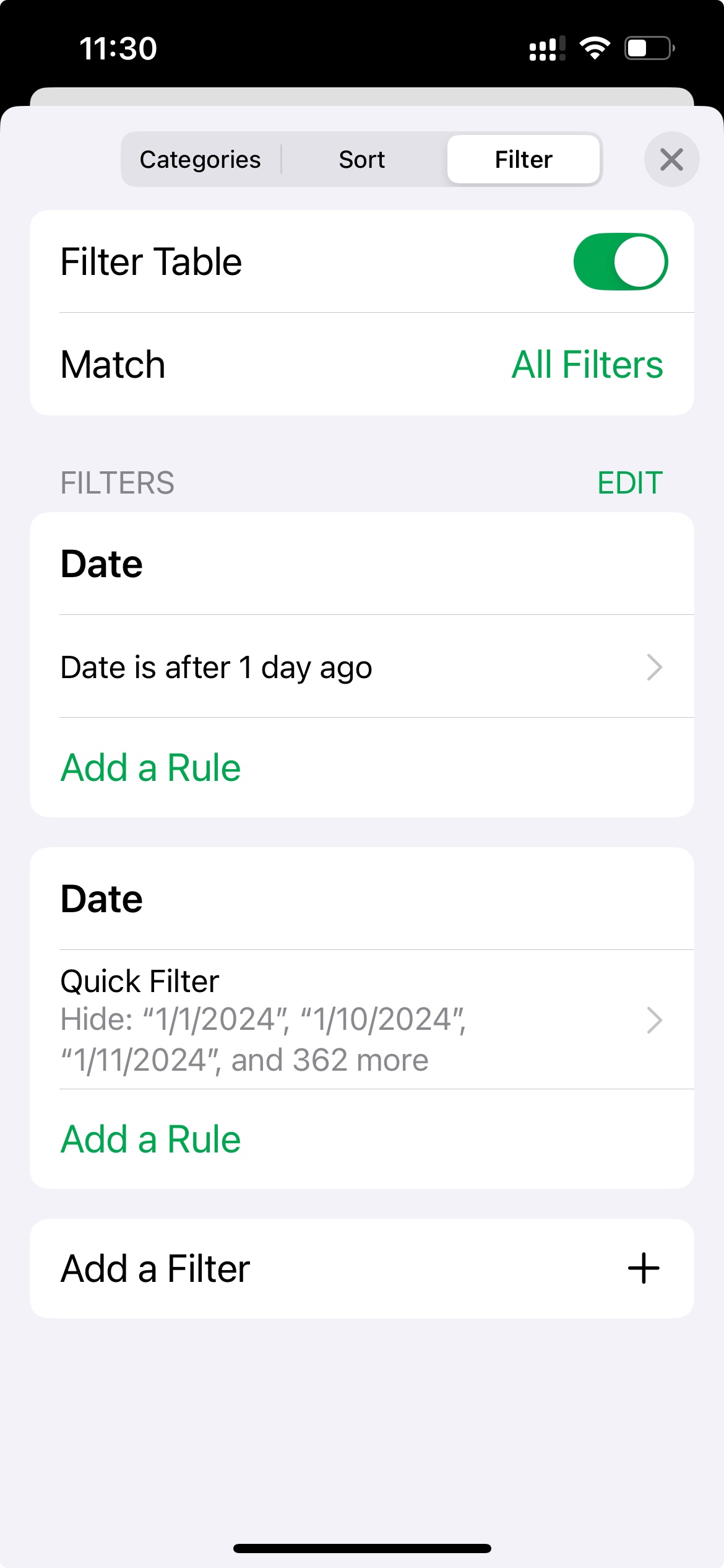 Or you can set it up in iOS directly. The filter symbol is to the right of the format "paintbrush". In iOS it looks like this.