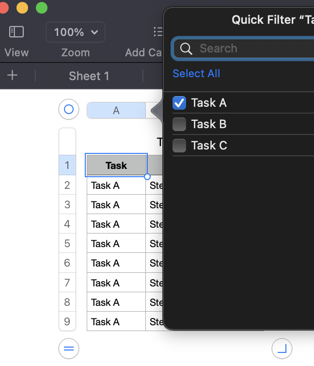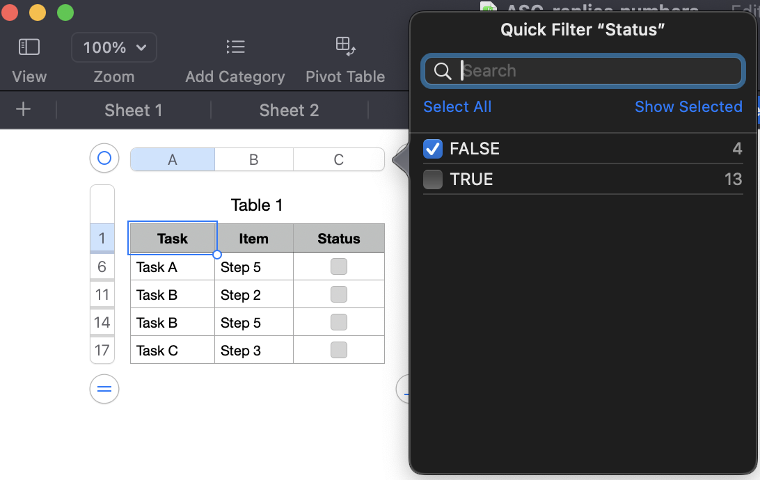 Checklist in Numbers over Multiple Sheets combined in a Main Checklist
