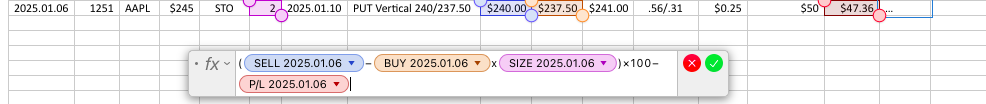 IE: (I26-J26*F26)*100-O26. The result should be $452.64.