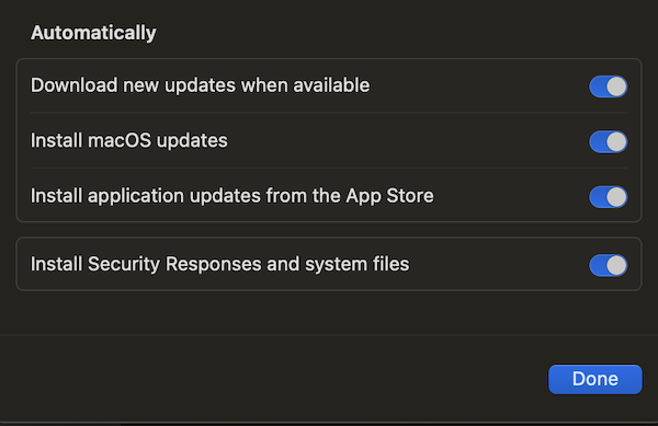 Go to > System Settings > General > Software Update, and click the Info button next to Automatic Updates. Shut off what you do not want to update automatically.