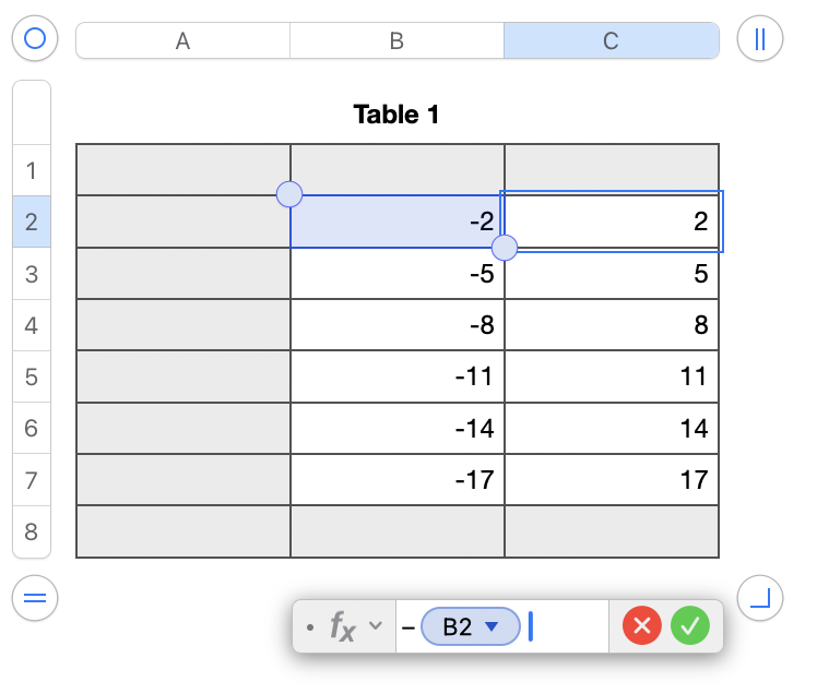 Formula in C2 is −B2