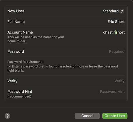 So, nothing wrong here. Your "Full Name" being Eric Short, and your account name being "chastinshort".
