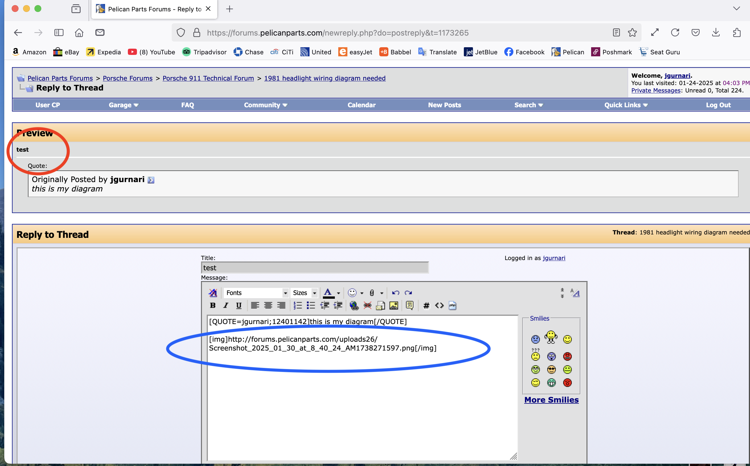 Can Not attach a Photo with my text message when replying to a thread on Pelican Porsche Forum.