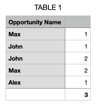 I am wanting a formula that can count how many names I have in my column but I want the duplicates not to be counted or the two entries are counted as 1.