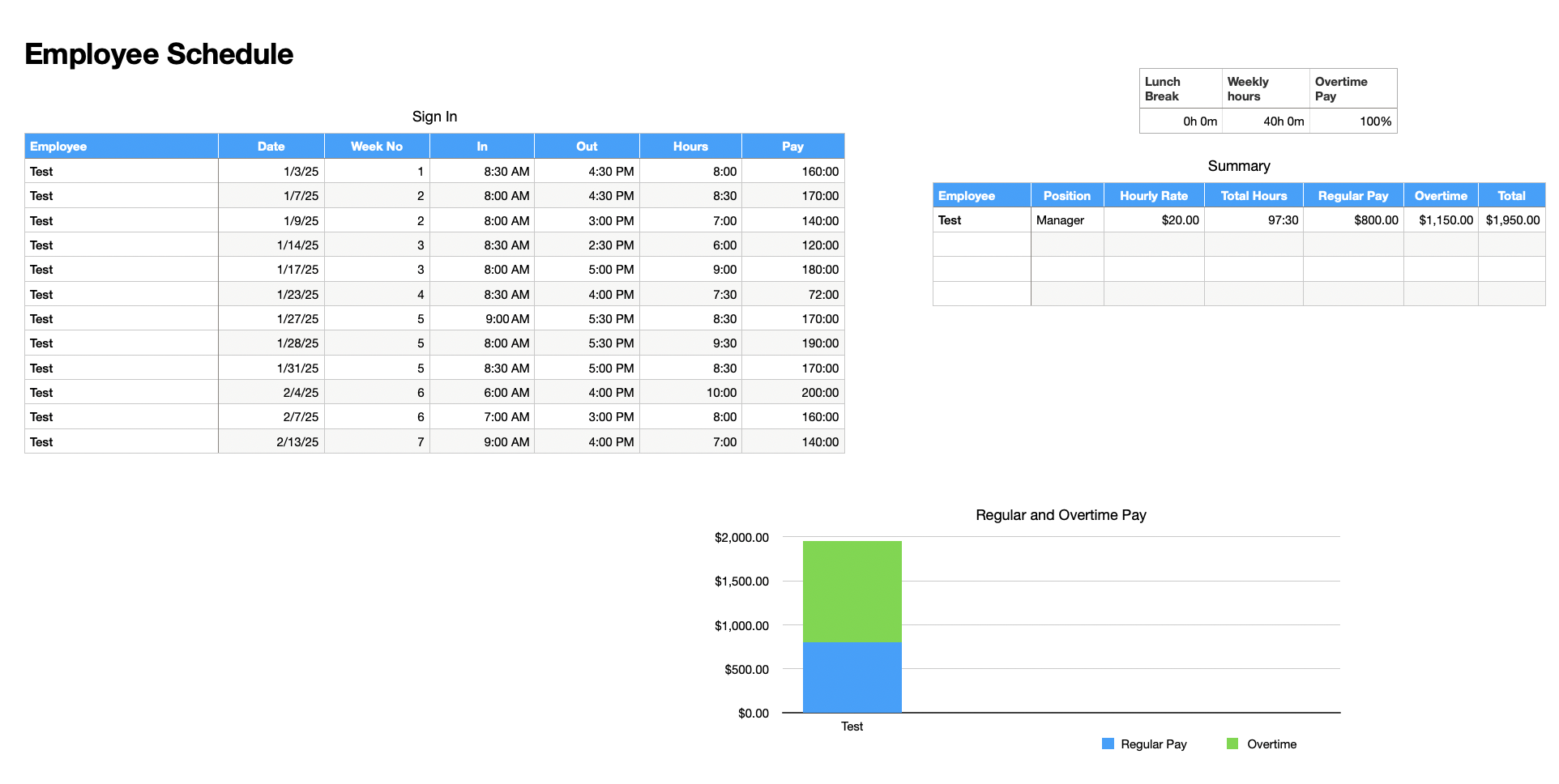 Now I have ran into another issue that I'm not sure how to fix. So I'm asking for assistance again. When I enter in all the times it is counting times as overtime that should not be overtime. So unless I make the overtime pay the same regular pay, my total pay is incorrect. The total pay is not respecting the week number so it's just adding in all the time together.