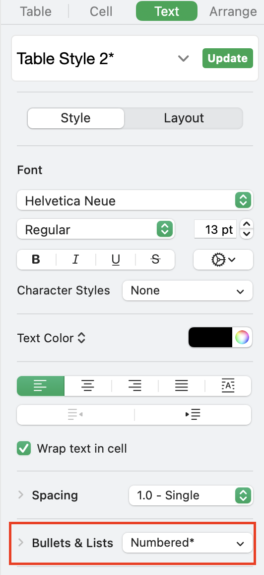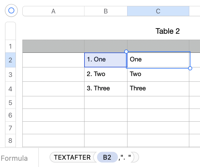 I imported a list into Numbers from Notes and I cannot get rid of the numbers before each item