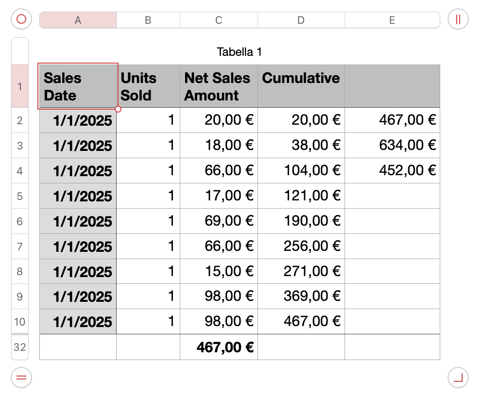 - Sorting: do not sort the table. Numbers has a very long standing bug about sorting formulas that have references like D$2:D2 where the first part is locked to a row and the second is not. It creates reference errors.