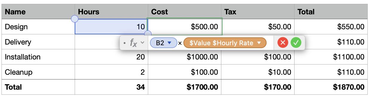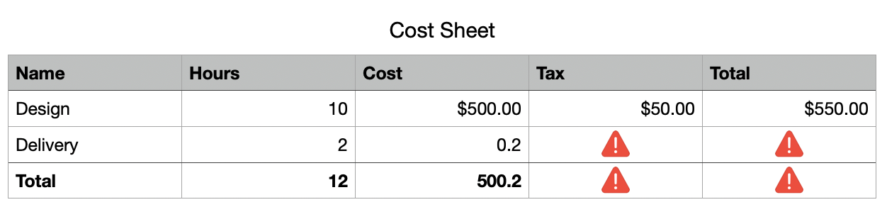 Now, delivery cost is trying to reference Rates::C2 and the tax is broken, trying to reference a non-existent tax cell.