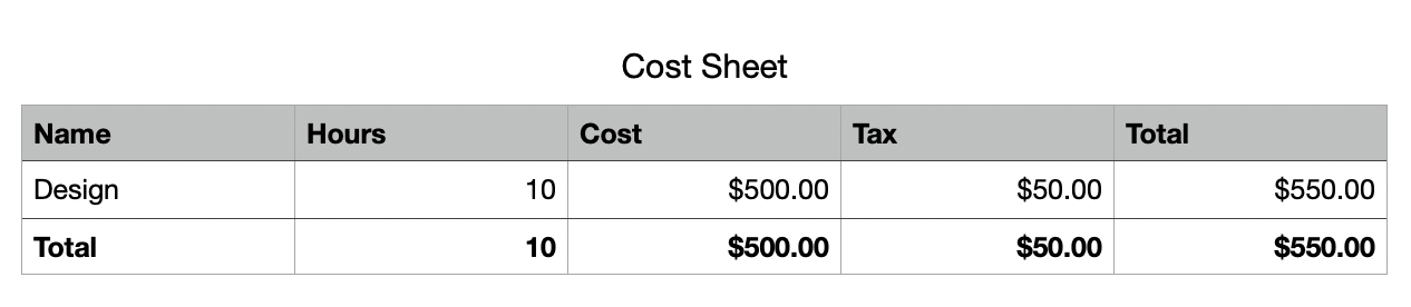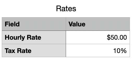 An even clearer example would if you have a table for rates - hourly pay, tax rates, etc. and a separate cost sheet. Let's say I have a Rates table: