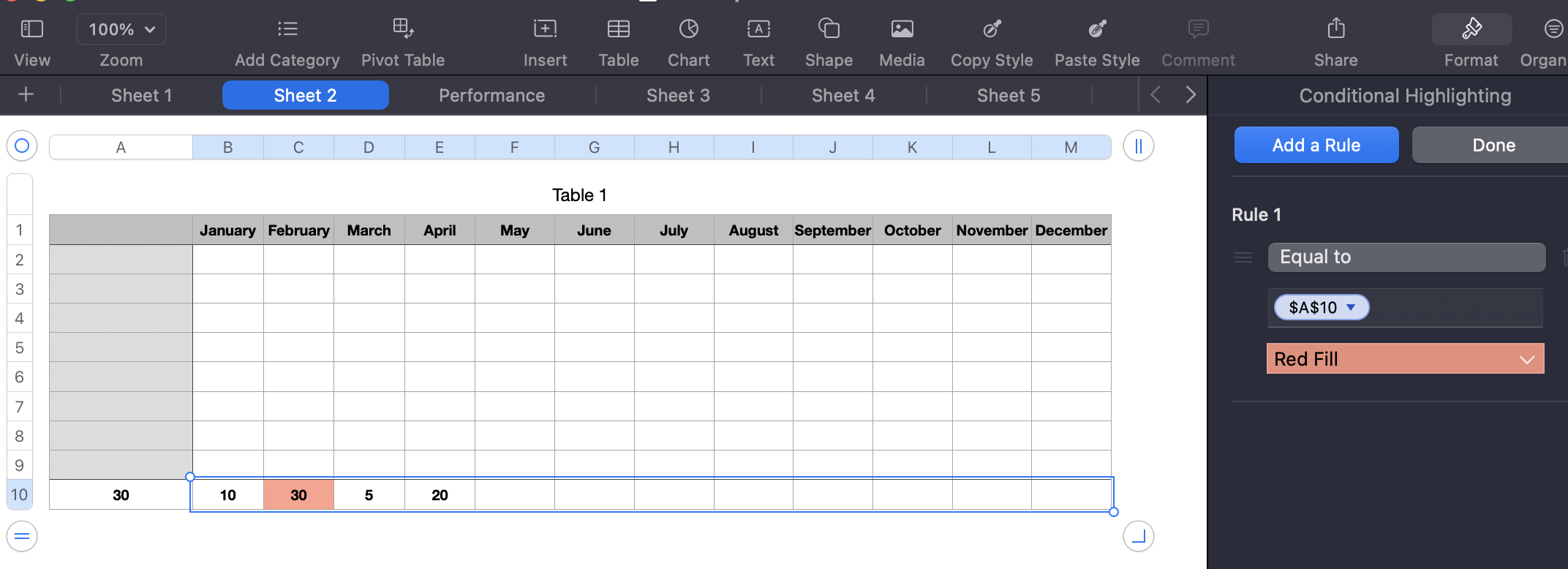 I have a footer row giving the total of the above cells in the column. Each column represents a month and is totaled sequentially so columns to the right will be empty for some part of the year. Is there a way to write a rule that looks across this row and highlights the highest total found?