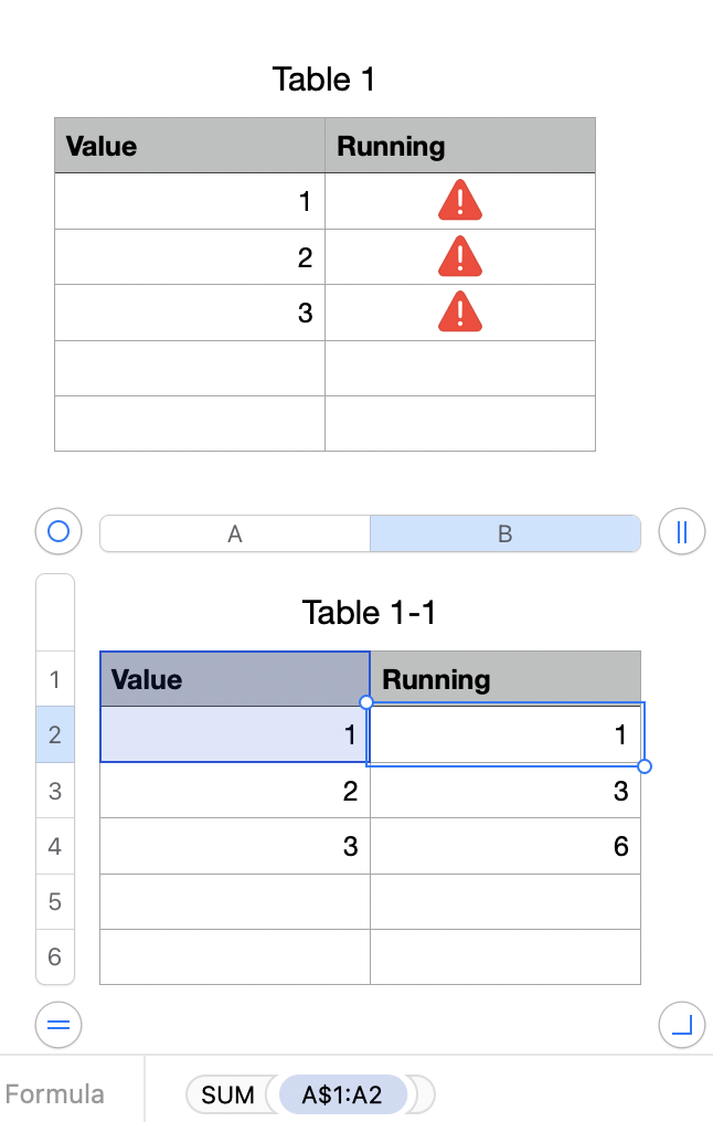 The expanding range gracefully handles the cases where (as is typical in Numbers) you have a Header Row with text in it. It also is less likely to get messed up should you ever have to add or delete rows in the middle of the table.