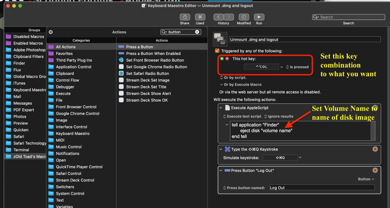 Is there a way to automatically unmount an encrypted .dmg on iMac when logged out ?